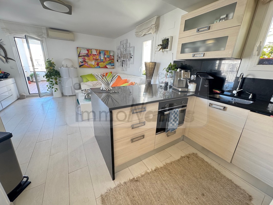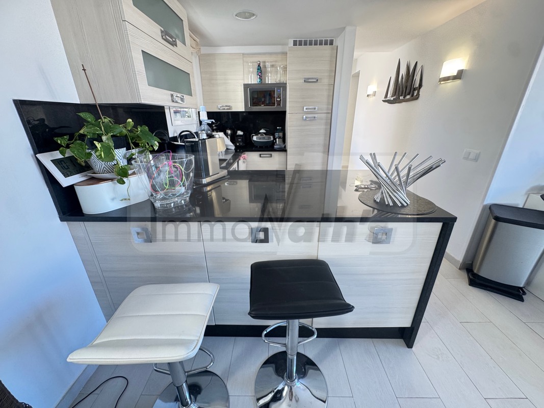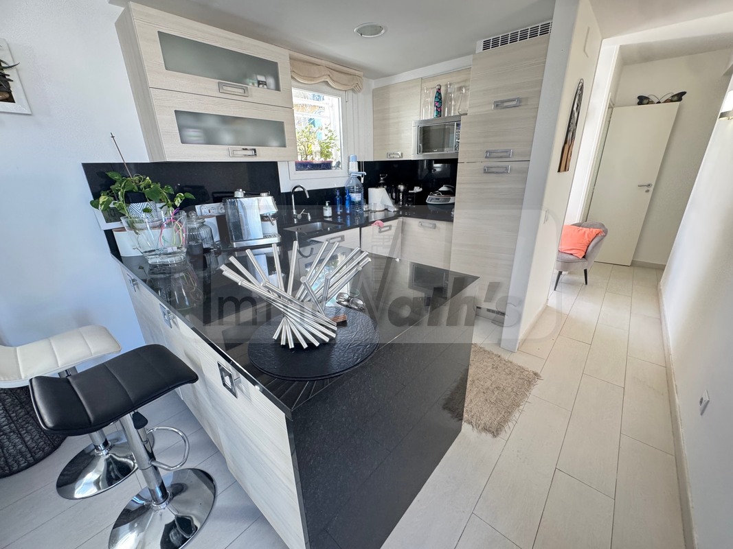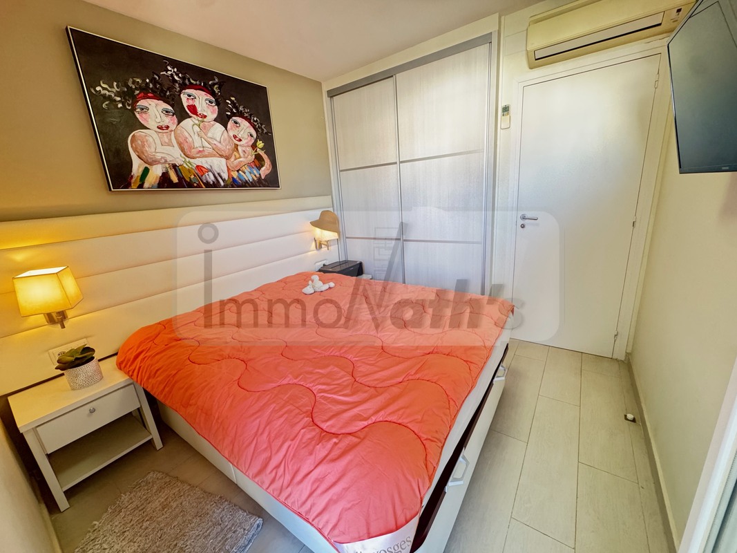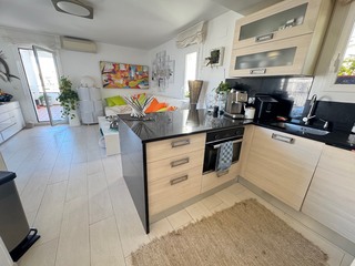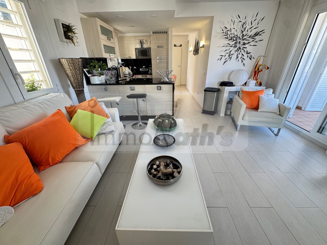 Il possède 2 chambres avec accès à une terrasse de 20m² vue mer, un wc séparé, une salle de bain avec douche à l'italienne. Il y a une agréable cuisine aménagée donnant sur un grand salon séjour avec terrasse de 25m² vue mer.