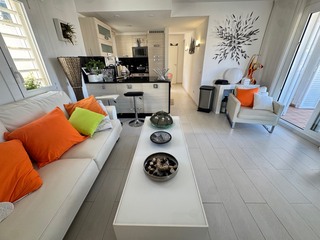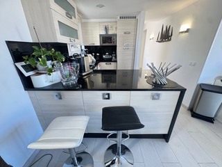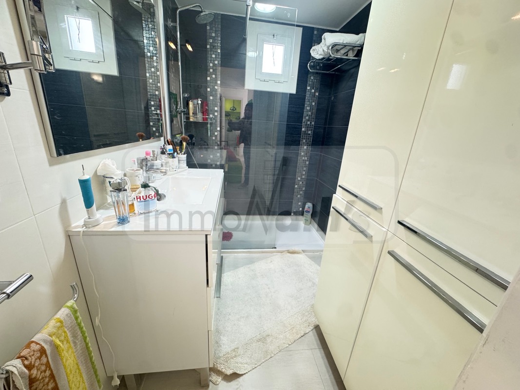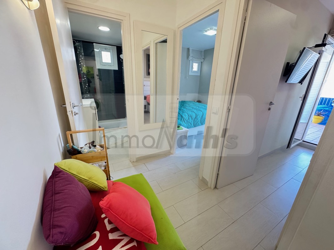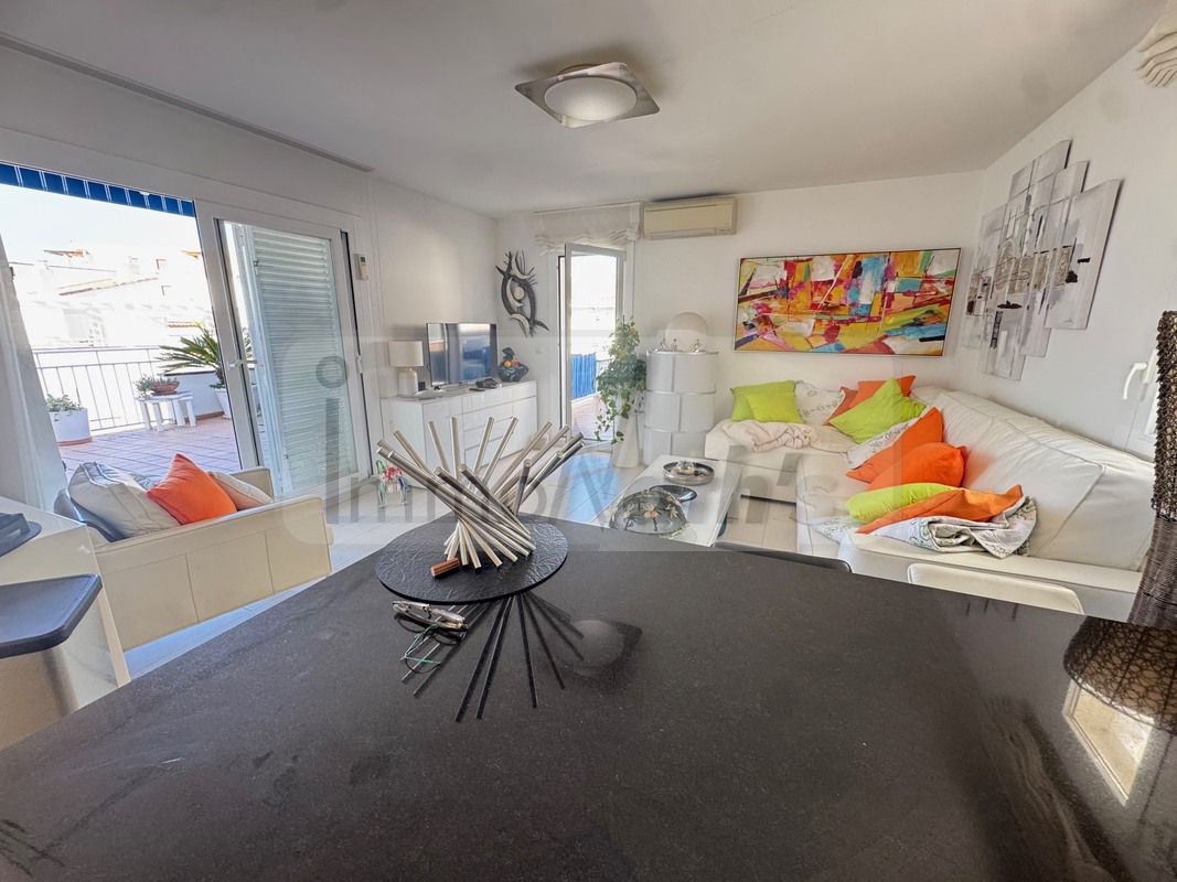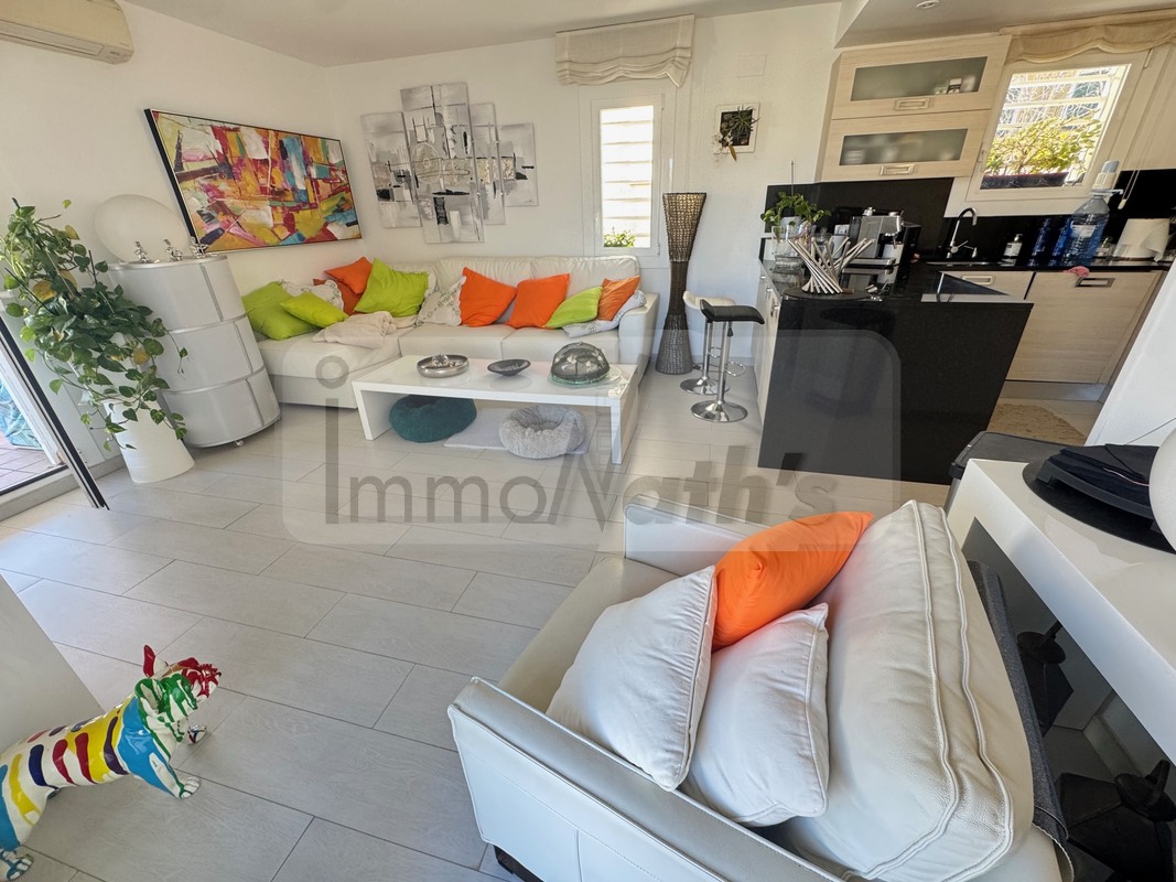 Il possède 2 chambres avec accès à une terrasse de 20m² vue mer, un wc séparé, une salle de bain avec douche à l'italienne. Il y a une agréable cuisine aménagée donnant sur un grand salon séjour avec terrasse de 25m² vue mer.